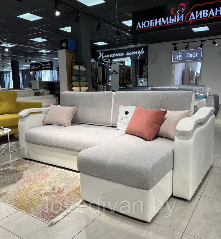 Диван-кровать Гранд .Габаритные размеры L2300*B1550*H920.Cпальное место 1550*2000.наполнение :независимый пружинный блок.Механизм раскладки тик-так.И наполнение,и метод раскладки идеально подойдут для ежедневного использования.В данной модели угол взаимозаменяемый,т.е.при необходимости вы сможете самостоятельно поменять расположение угла.Имеются две ниши для хранения постельных принадлежностей.Подлокотники в диване смотрятся очень легко и воздушно,отличное решение для малогабаритной квартиры .Пошив .больших подушек на диване позволяет сделать их с двух сторон разных цветов В зависимости от настроения их можно переворачивать, и ваш диван "заиграет" по- новому .
